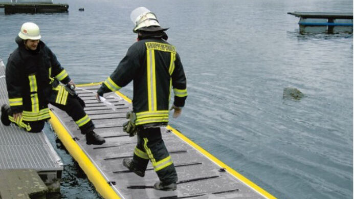 Egal ob Sommer oder Winter, Feuerwehren kommen zu jeder Jahreszeit mit den unterschiedlichsten Untergründen bei Rettungen in Verbindung. Um hier nicht den Boden unter den Füßen zu verlieren hat die Fa. Vetter Rettungsstege entwickelt die in Sekundenschnelle mit nur wenig Druckluft einsatzbereit sind. Egal ob bei Rettung von Ertrinkenden, ins Eis eingebrochene Personen, bei der Rettung auf unsicheren Untergründen von bspw. sumpfigen Böden oder auch zum Überwinden von Gewässern. Diese Rettungsstege können individuell eingesetzt werden und sind mit ihren koppelbaren Standardlängen (6,10 und 15 Meter) und ihrer rutschsicheren Oberfläche für jede Notsituation optimal.