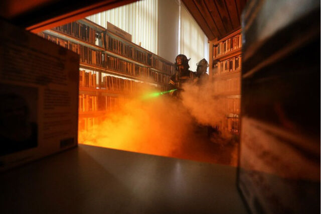 Rauch und Flammen, wo echtes Feuer nicht möglich ist.